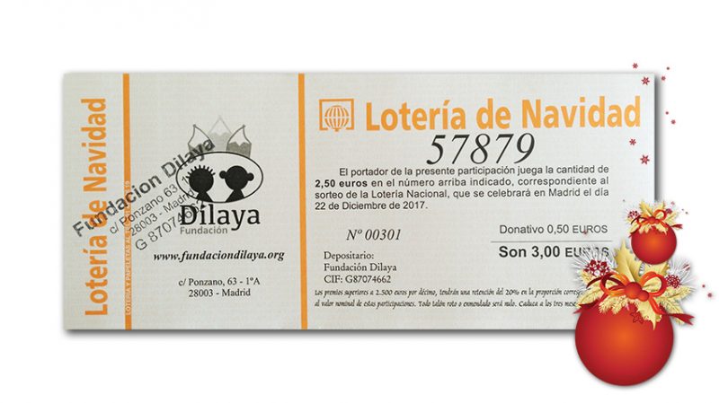 Hemos mantenido el número del año pasado, 57879, y el coste de 3€. El donativo para los proyectos de Dilaya en Congo será de 0,50€ y el portador de la participación jugará 2,50€ correspondiente al sorteo de la Lotería Nacional que se celebrará en Madrid el día 22 de diciembre de 2018.